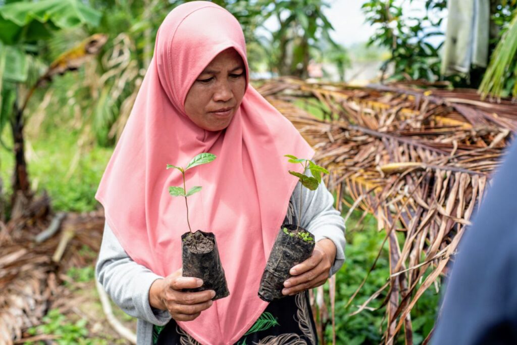 - 750 Arabica seedlings, entrusted exclusively to women and now chest-high.